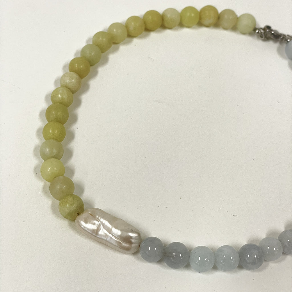 Stone & Freshwater Pearl necklace by Ana Maria of Merana Jewellery.