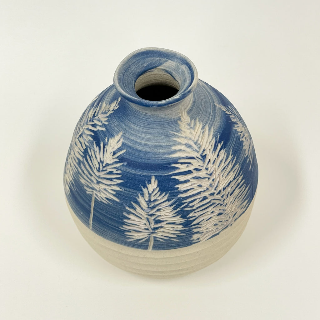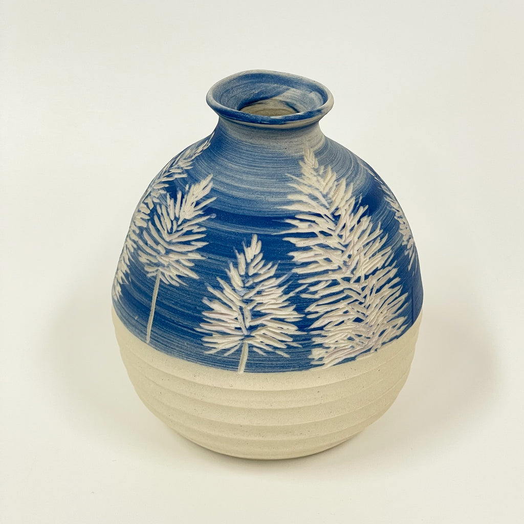 Rowena Harries - Blue & White Mulla Mulla Sgraffito Vase Medium (rha001)