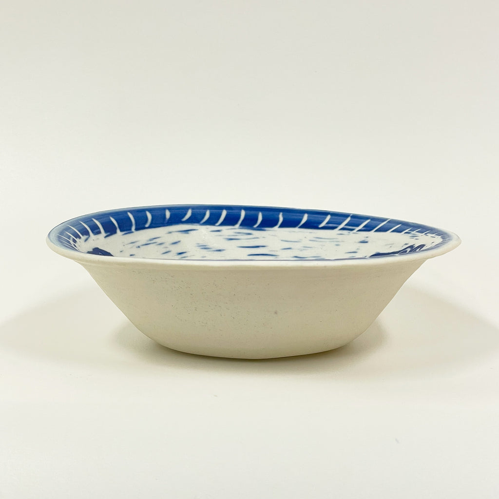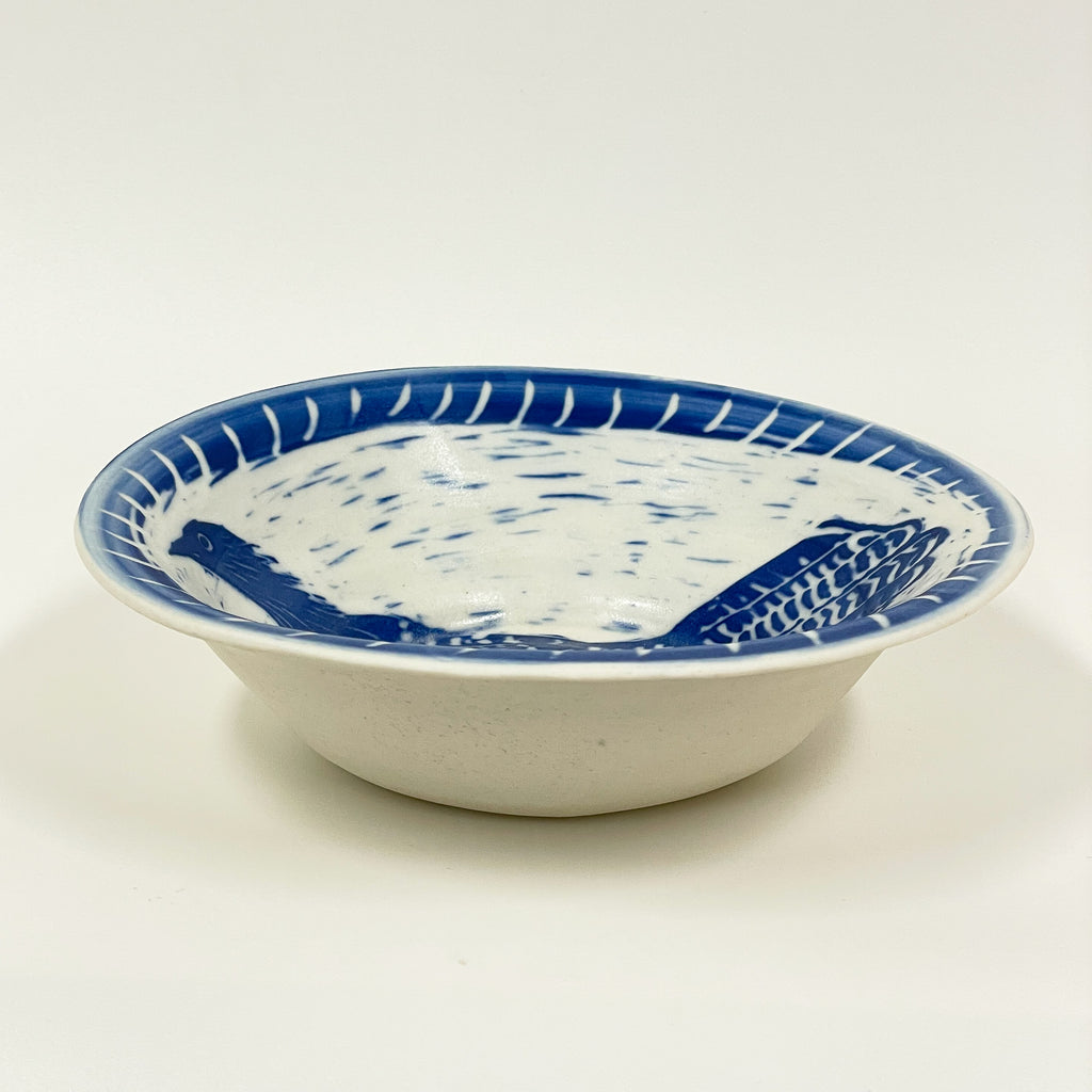 Rowena Harries - Blue & White Pheasant Coucal Sgraffito Bowl Large (rha006)